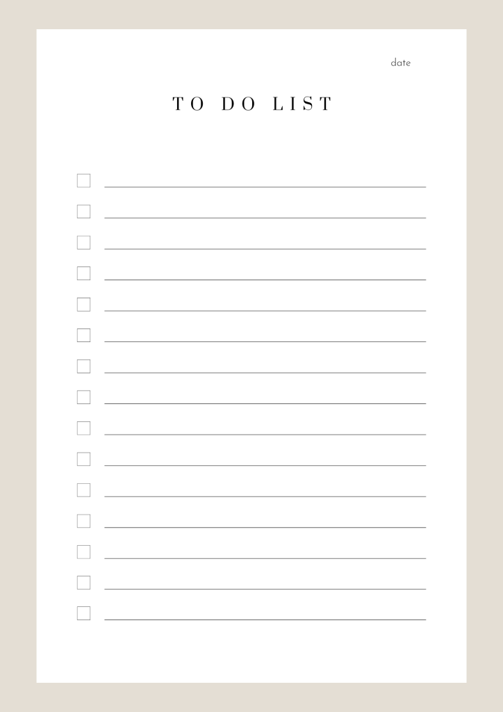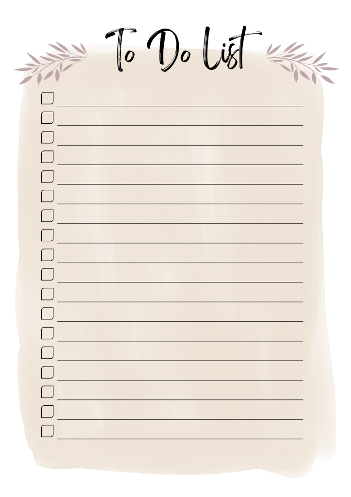 Maintenant que je t’ai listé un max d’avantages à utiliser des to-do-list, je sais que je t’ai donné envie d’en utiliser ! 😉 Ça tombe bien parce que voici mon cadeau. Ci-dessous, tu trouveras le genre de modèles que moi j’utilise. Ce sont des modèles « standard » mais ces modèles pourront te donner des idées pour créer ta propre to-do-list à ton image !